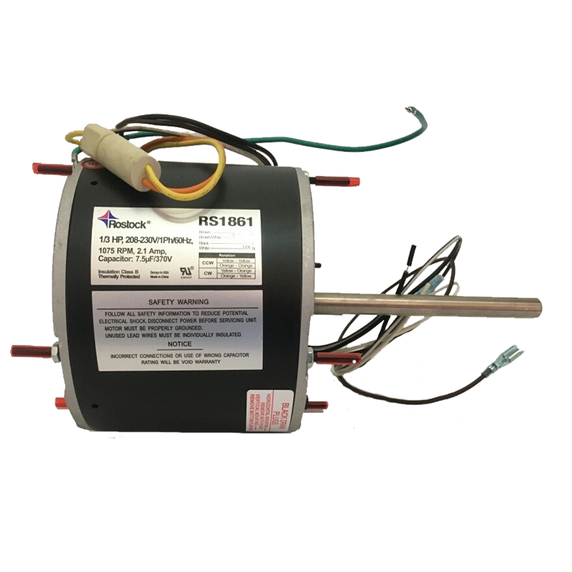 Air-Conditioning Condenser Fan Motor, 1/3 HP, 208-230V, 1Ph 60Hz, 1075 RPM, 2.1 Amp, capacitor 7.5µF/370V